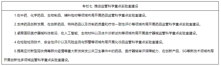 6.深入實(shí)施中國(guó)藥品監(jiān)管科學(xué)行動(dòng)計(jì)劃。統(tǒng)籌推進(jìn)監(jiān)管科學(xué)研究基地和重點(diǎn)實(shí)驗(yàn)室建設(shè),開(kāi)展監(jiān)管科學(xué)等研究。將藥品監(jiān)管科學(xué)研究納入國(guó)家相關(guān)科技計(jì)劃,重點(diǎn)支持中藥、疫苗、基因藥物、細(xì)胞藥物、人工智能醫(yī)療器械、醫(yī)療器械新材料、化妝品新原料等領(lǐng)域的監(jiān)管科學(xué)研究,加快新產(chǎn)品研發(fā)上市。支持國(guó)家審評(píng)、檢驗(yàn)、評(píng)價(jià)、核查等機(jī)構(gòu)參與國(guó)家相關(guān)科技項(xiàng)目,鼓勵(lì)開(kāi)展藥品快速檢測(cè)新技術(shù)、藥品研發(fā)生產(chǎn)及質(zhì)量控制等研究,開(kāi)展數(shù)字診療裝備、個(gè)體化診療產(chǎn)品、生物醫(yī)用材料的質(zhì)量評(píng)價(jià)、檢測(cè)技術(shù)及檢測(cè)規(guī)范等研究,開(kāi)展化學(xué)藥品、疫苗、新型藥物和特殊藥物劑型等安全性、有效性評(píng)價(jià)技術(shù)以及創(chuàng)新醫(yī)療器械標(biāo)準(zhǔn)體系研究。鼓勵(lì)運(yùn)用現(xiàn)代科學(xué)技術(shù),結(jié)合我國(guó)傳統(tǒng)優(yōu)勢(shì)項(xiàng)目和特色植物資源,加強(qiáng)化妝品新原料研究。